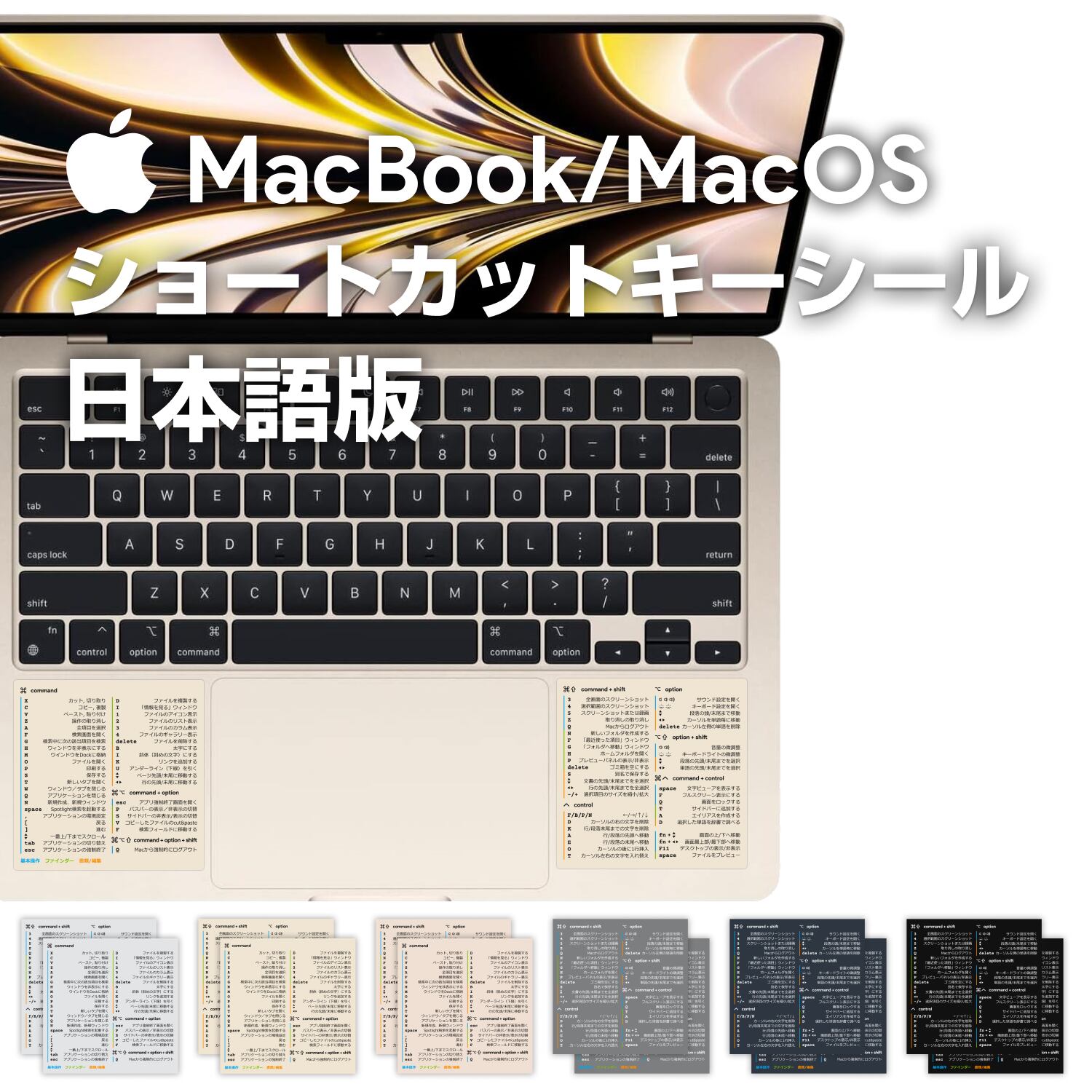 【日本語版】 MacOS ショートカットキー・シール 送料無料 (3サイズ x 9カラー)